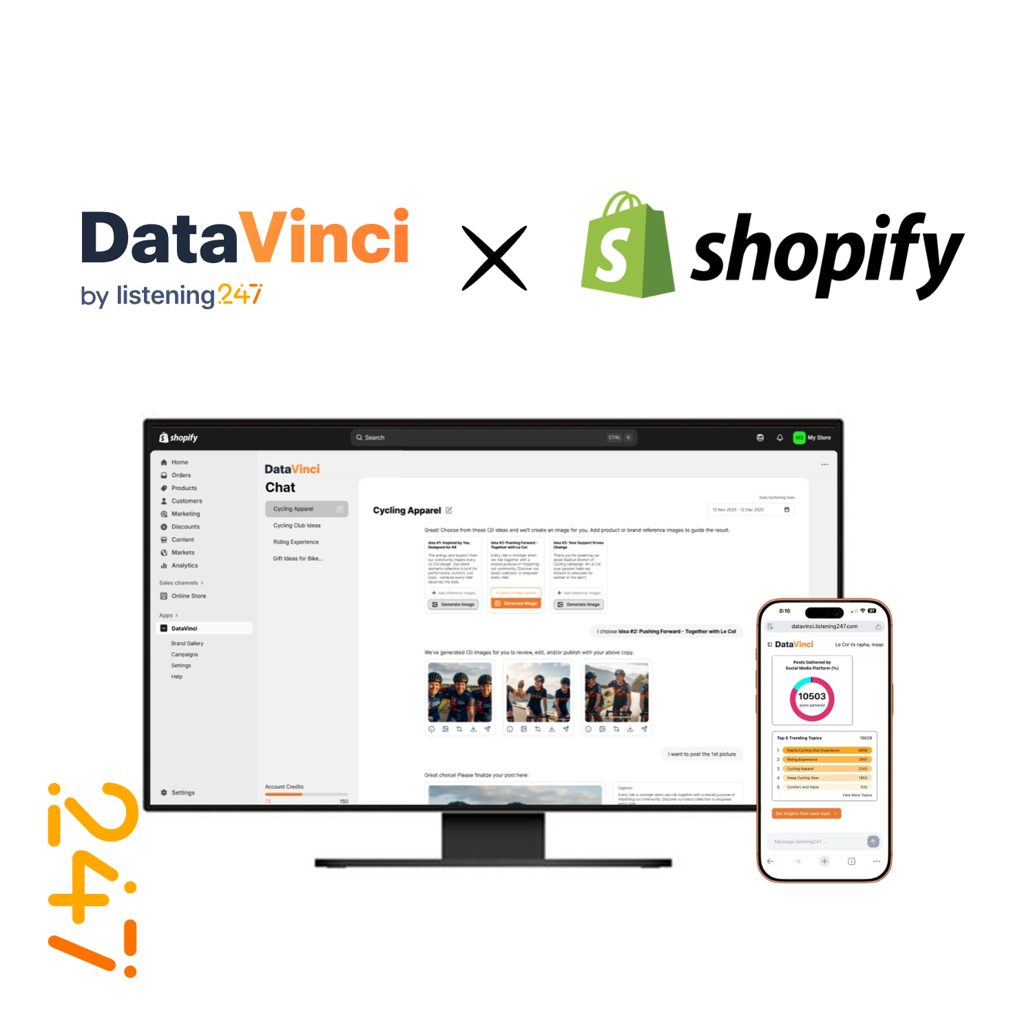When listening247 took a look at how small to medium size businesses operated, how they typically created social media content, and where they were doing business, we knew we needed to take our web app of DataVinci and build it directly into Shopify.