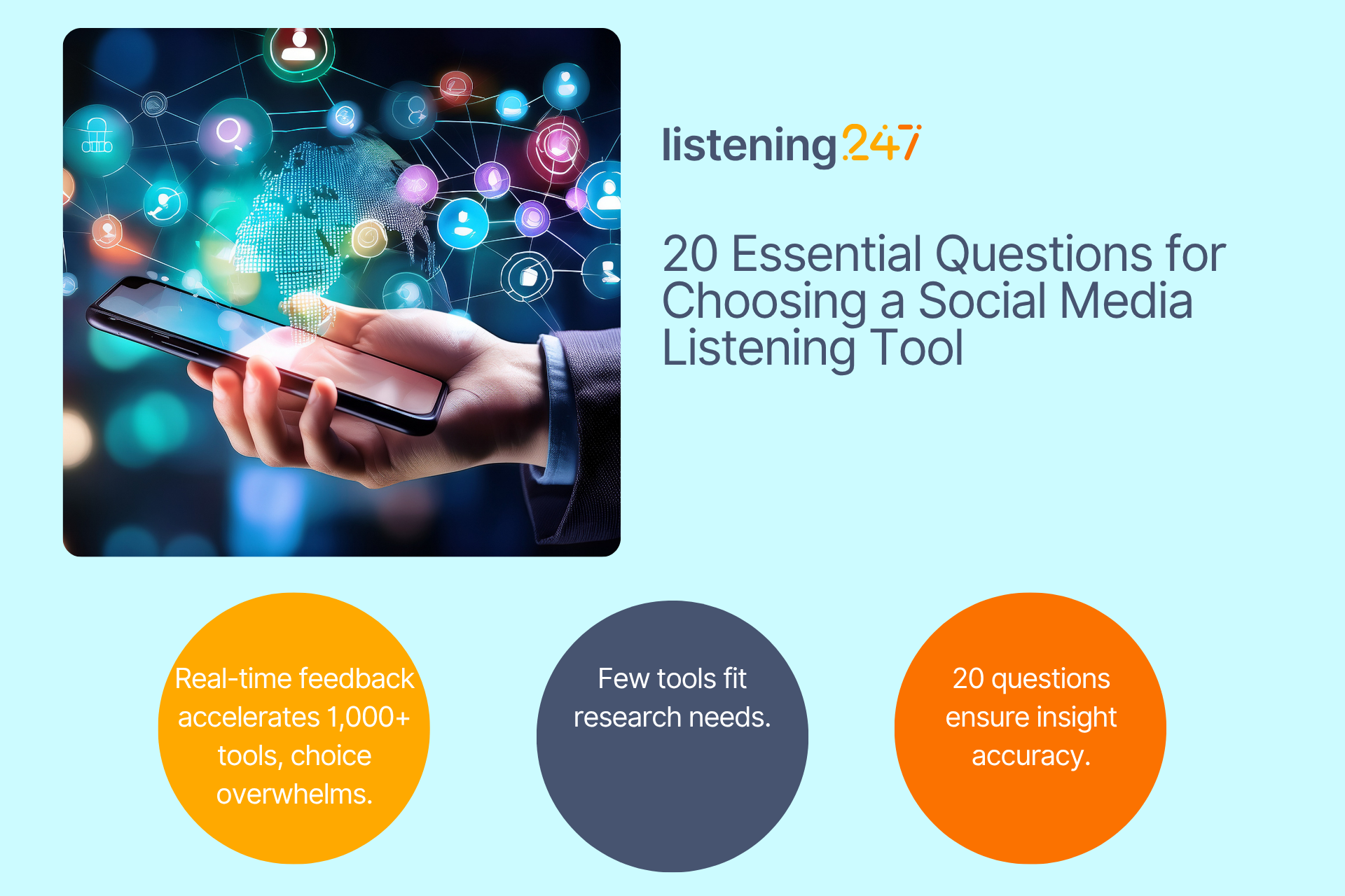 This material includes a used case infographic, which presents the 20 Questions you should be asking when evaluating Social Media Listening vendors. It dives deeper into helping organisations understand the process in choosing the right tool for their organisation and whatever they are trying to achieve.